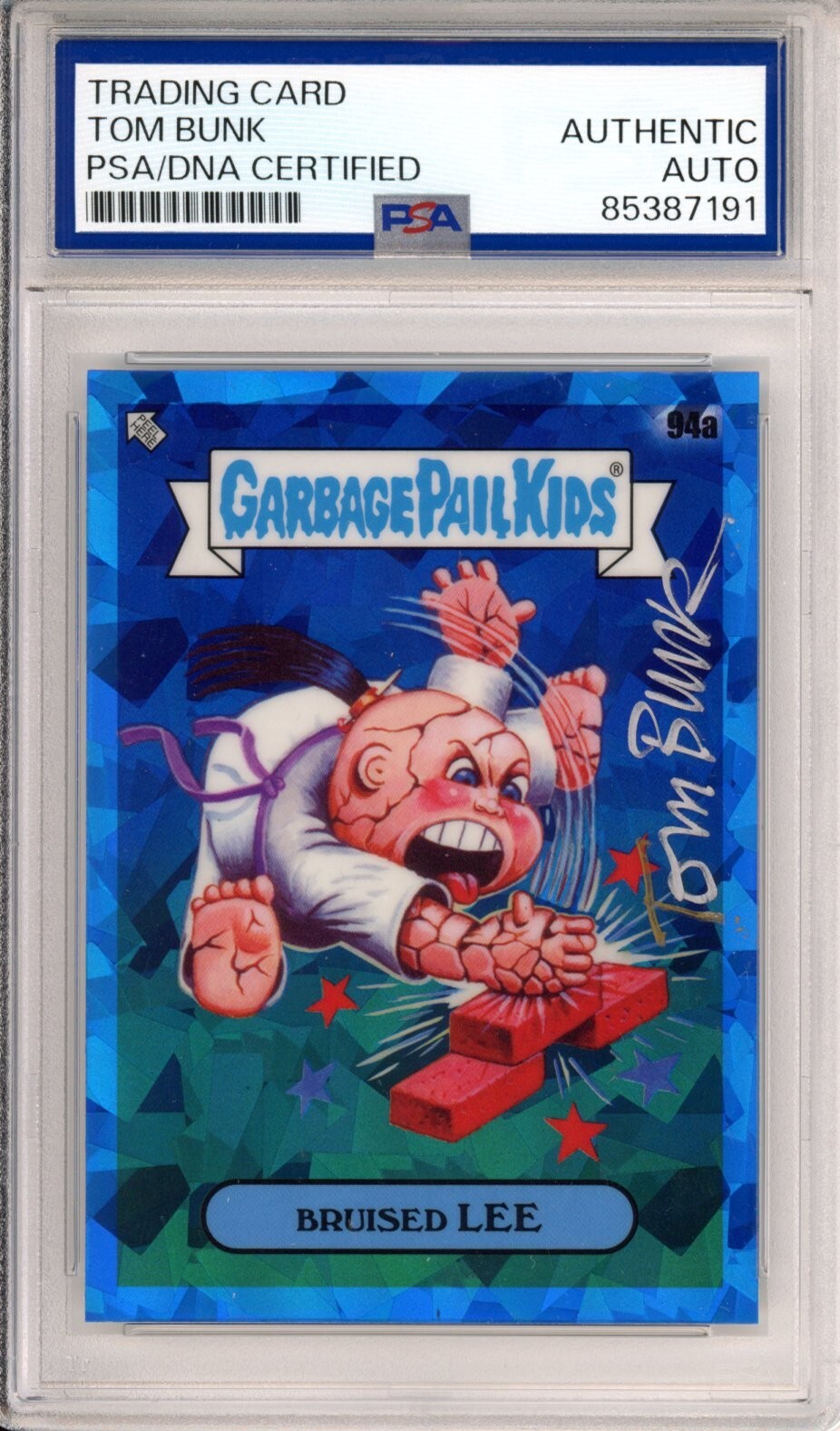 2021 TOPPS GARBAGE PAIL KIDS SAPPHIRE BRUISED LEE #94A PSA DNA SIGNED TOM BUNK COLLECTIBLE MEMORABILIA