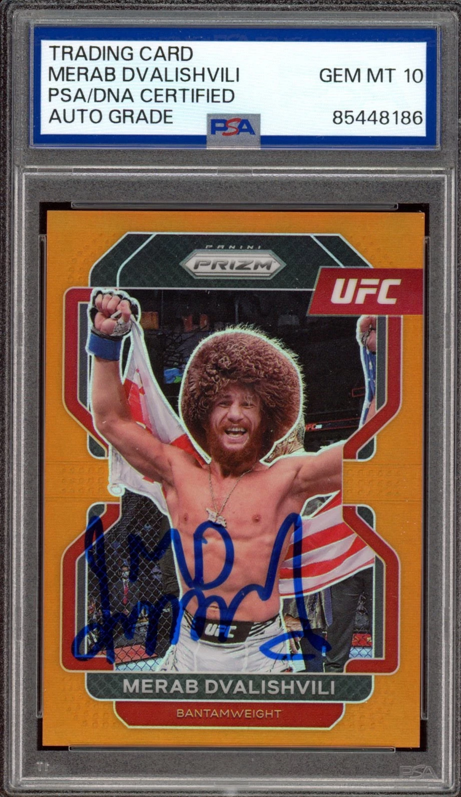 2022 PANINI PRIZM UFC #198 MERAB DVALISHVILI SIGNED ORANGE /99 PSA GEM 10 AUTO COLLECTIBLE MEMORABILIA