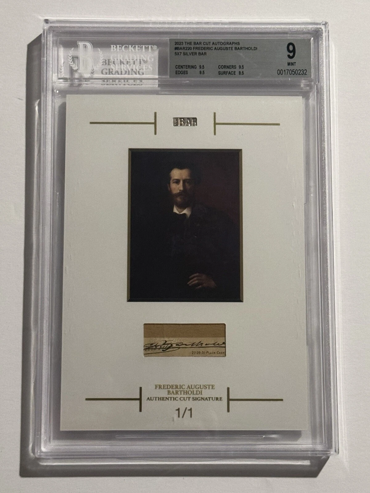 2023 THE BAR FREDERIC AUGUSTE BARTHOLDI 5×7 SILVER CUT AUTOGRAPH 1/1 AUTO BGS 9 COLLECTIBLE MEMORABILIA