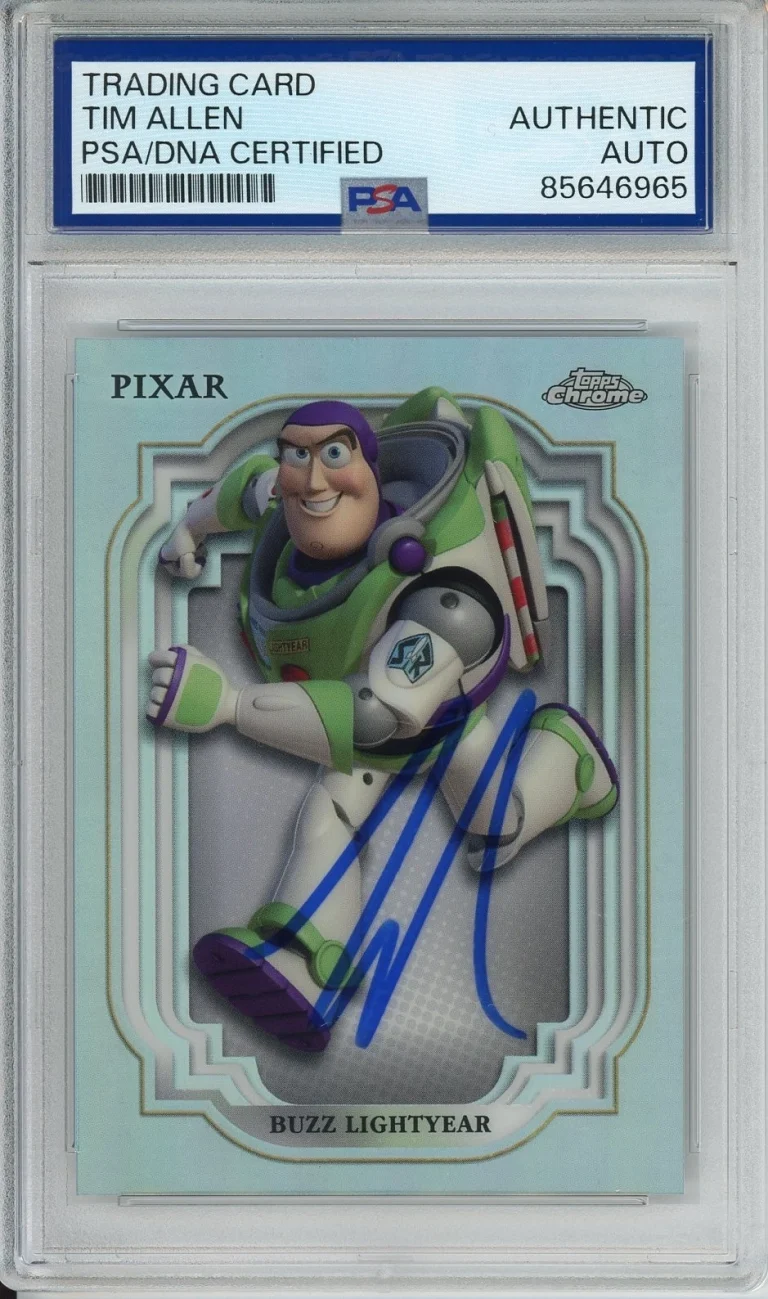 2024 TOPPS CHROME DISNEY REFRACTOR BUZZ LIGHTYEAR SIGNED TIM ALLEN PSA DNA COA COLLECTIBLE MEMORABILIA
