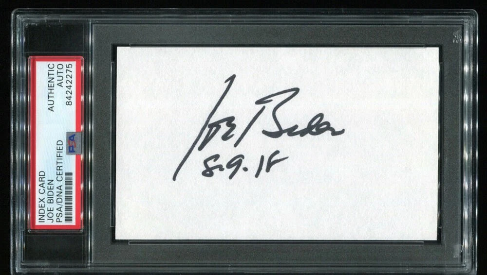 46TH PRESIDENT JOE BIDEN SIGNED AUTOGRAPH PSA ENCAPSULATED SLABBED INDEX CARD COLLECTIBLE MEMORABILIA