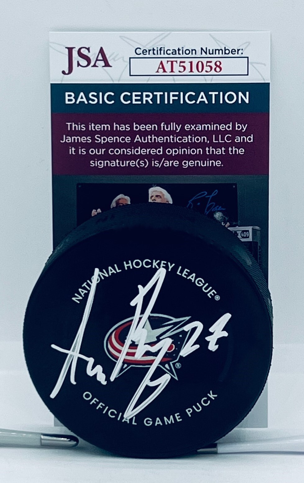 ADAM BOQVIST SIGNED COLUMBUS BLUE JACKETS OFFICIAL GAME PUCK AUTOGRAPHED JSA COA COLLECTIBLE MEMORABILIA