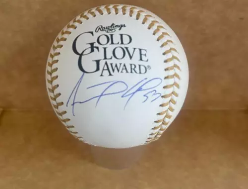 ADOLIS GARCIA RANGERS SIGNED AUTOGRAPHED GOLD GLOVE BASEBALL BECKETT AUTH COLLECTIBLE MEMORABILIA