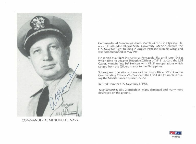 AL MENCIN SIGNED 8X10 (D) PSA DNA AC42750 WWII ACE 6 KILLS COLLECTIBLE MEMORABILIA