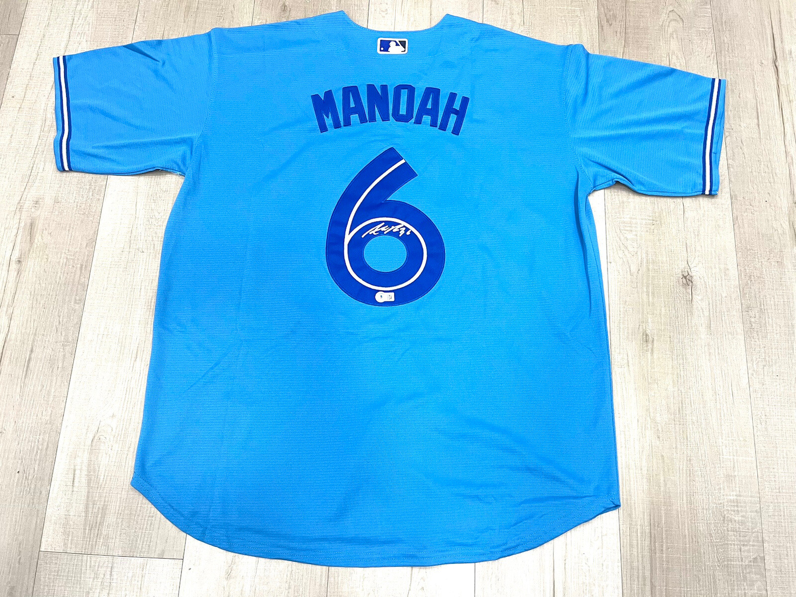 ALEK MANOAH HAND SIGNED TORONTO BLUEJAYS JERSEY BAS BECKETT CERT 3 COLLECTIBLE MEMORABILIA