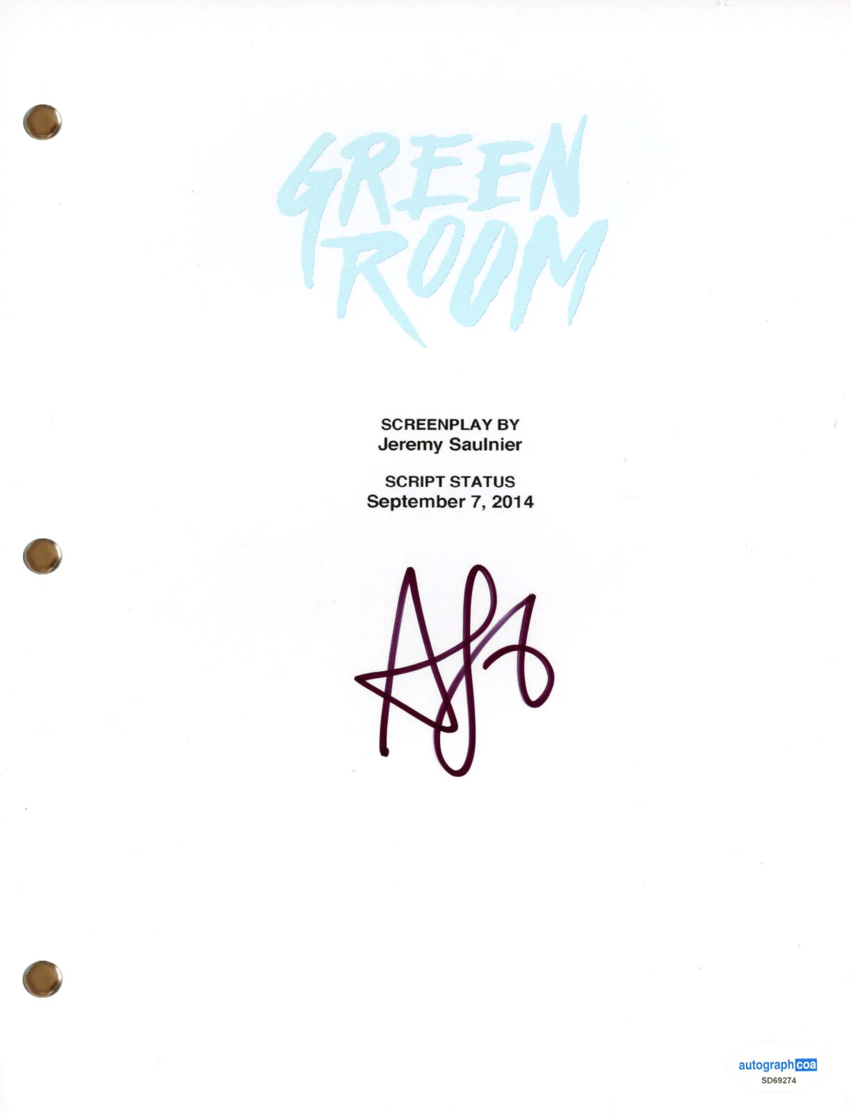 ALIA SHAWKAT “GREEN ROOM” SIGNED AUTOGRAPH MOVIE SCRIPT SCREENPLAY HORROR ACOA COLLECTIBLE MEMORABILIA