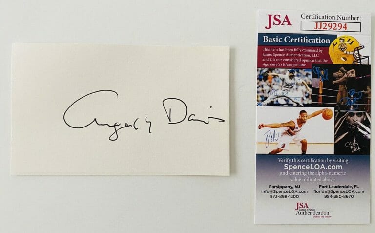 ANGELA DAVIS SIGNED AUTOGRAPHED 3×5 CARD JSA BLACK PANTHER CIVIL RIGHTS ACTIVIST COLLECTIBLE MEMORABILIA