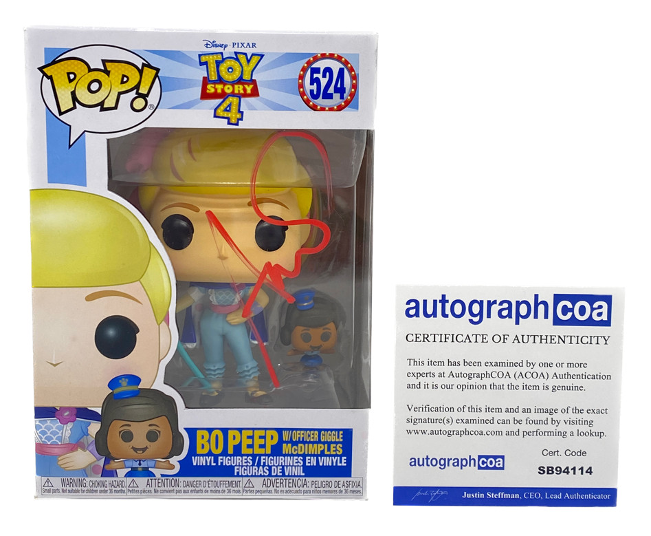 ANNIE POTTS SIGNED AUTOGRAPH FUNKO POP TOY STORY 4 BO PEEP 524 ACOA COA COLLECTIBLE MEMORABILIA