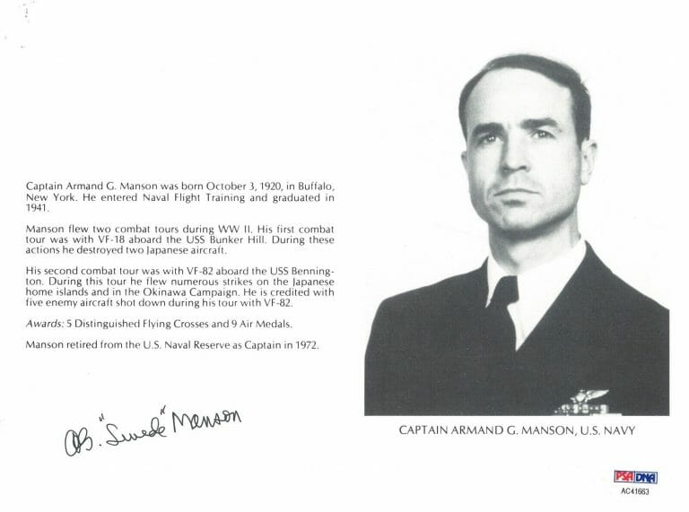 ARMAND MANSON SIGNED 8X10 (D) PSA DNA AC41663 WWII ACE 5 KILLS COLLECTIBLE MEMORABILIA