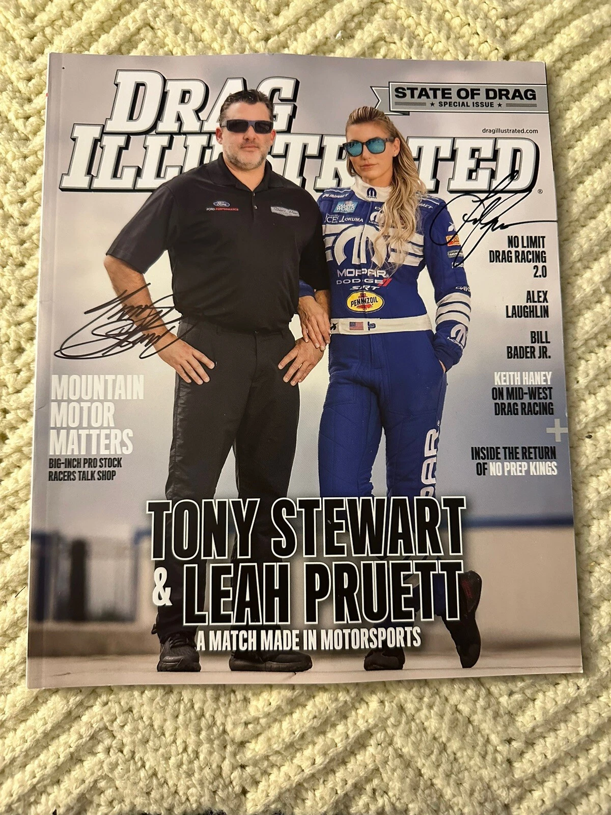 AUTOGRAPHED LEAH PRUETT TONY STEWART SIGNED MAGAZINE NHRA DRAG ILLUSTRATED COLLECTIBLE MEMORABILIA