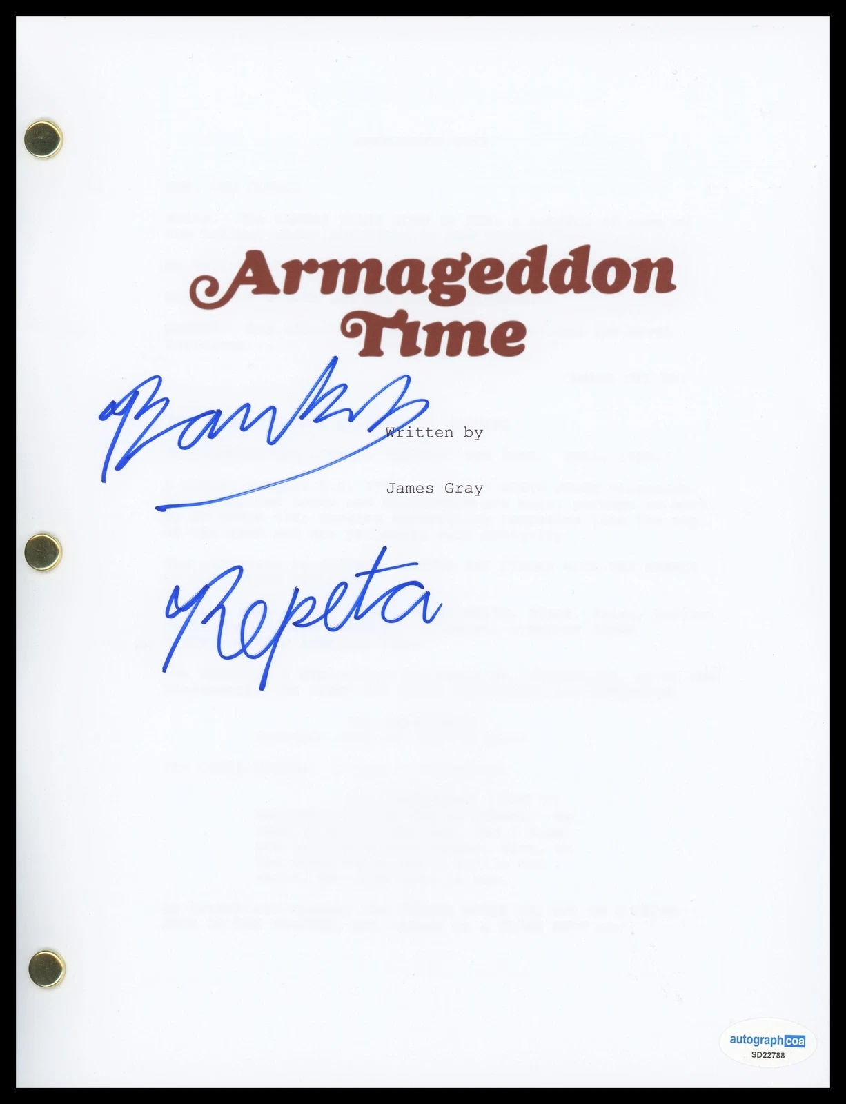 BANKS REPETA “ARMAGEDDON TIME” AUTOGRAPH SIGNED ‘PAUL’ SCRIPT SCREENPLAY ACOA COLLECTIBLE MEMORABILIA