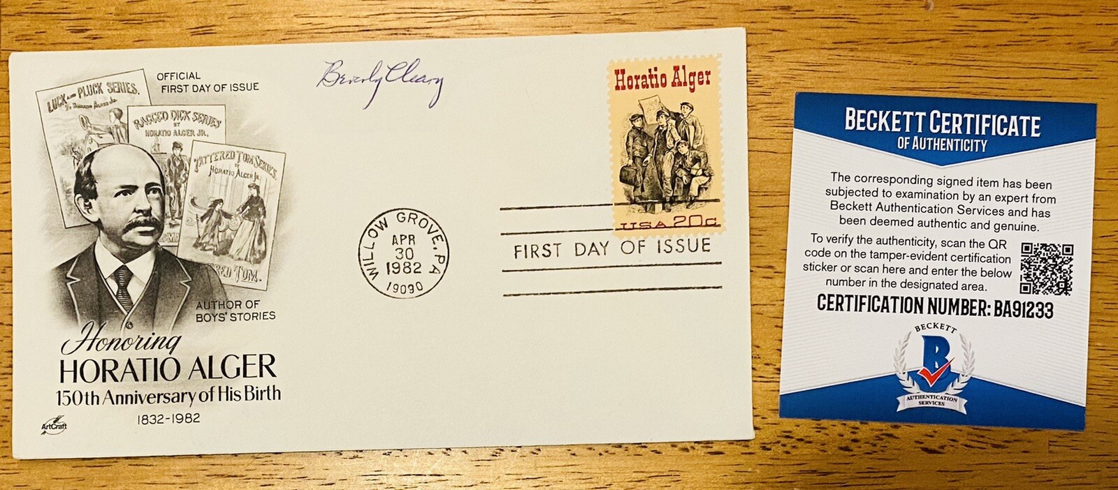 BEVERLY CLEARY SIGNED AUTOGRAPHED FIRST DAY COVER BECKETT BAS CHILDREN’S AUTHOR COLLECTIBLE MEMORABILIA