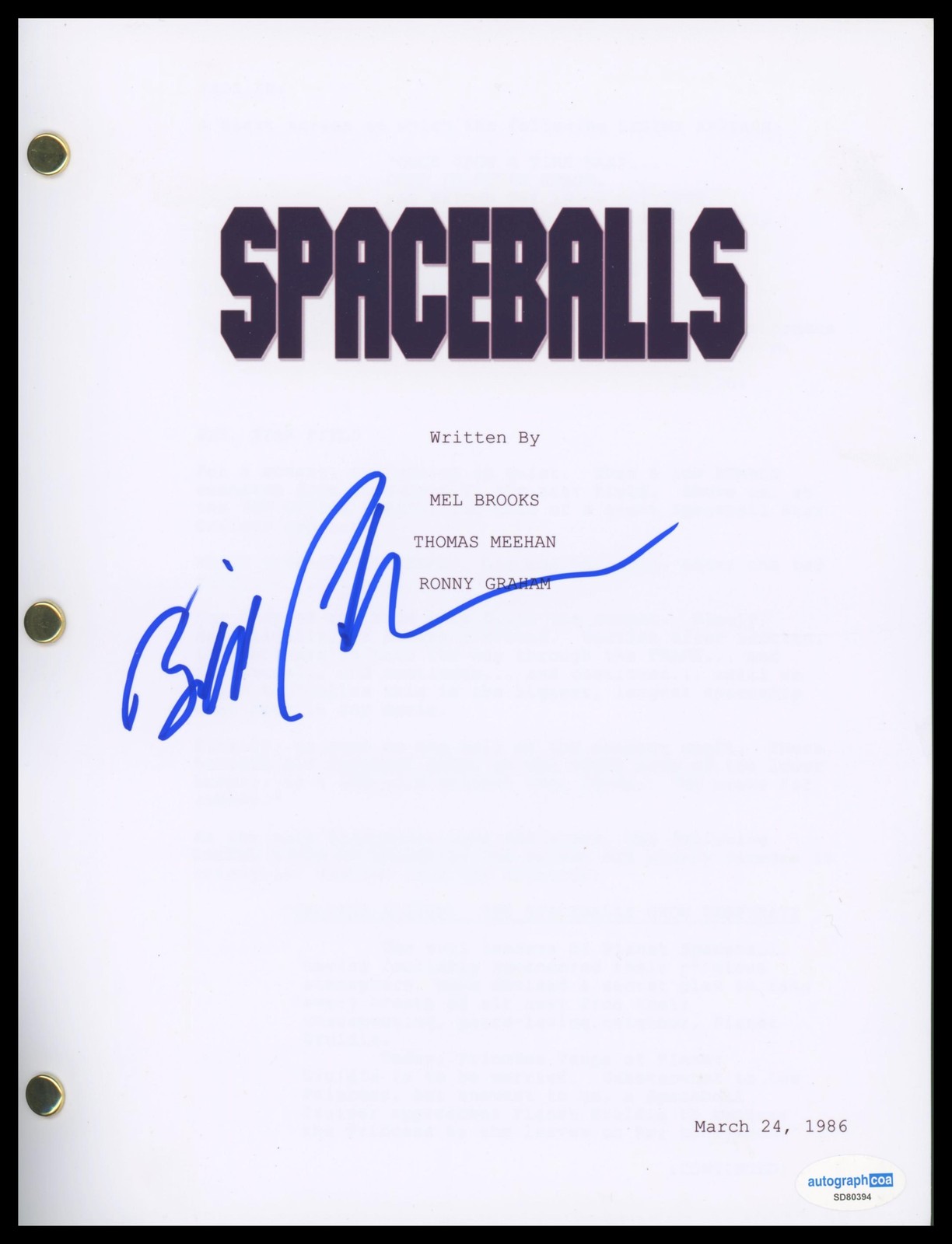 BILL PULLMAN “SPACEBALLS” AUTOGRAPH SIGNED ‘LONE STARR’ SCRIPT SCREENPLAY ACOA COLLECTIBLE MEMORABILIA