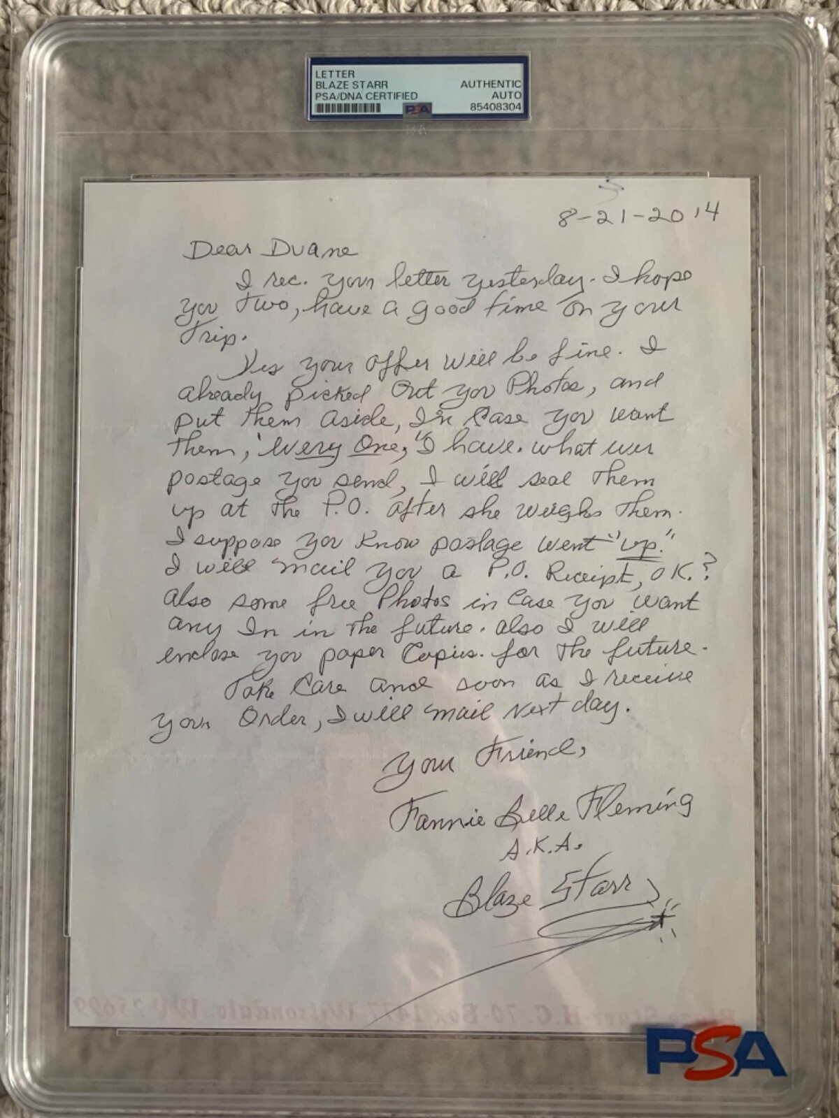 BLAZE STARR HAND SIGNED+HAND WRITTEN LETTER ON AMAZING STATIONARY PSA SLABBED COLLECTIBLE MEMORABILIA
