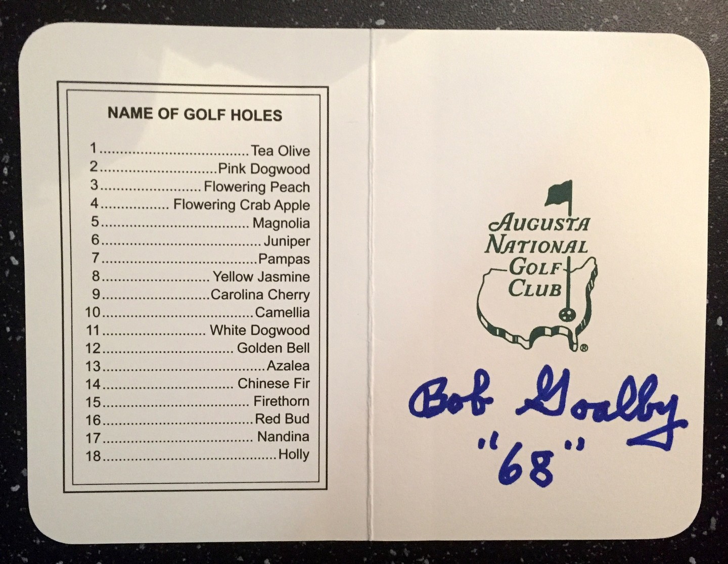 BOB GOALBY SIGNED AND DATED MASTERS SCORECARD COA COLLECTIBLE MEMORABILIA