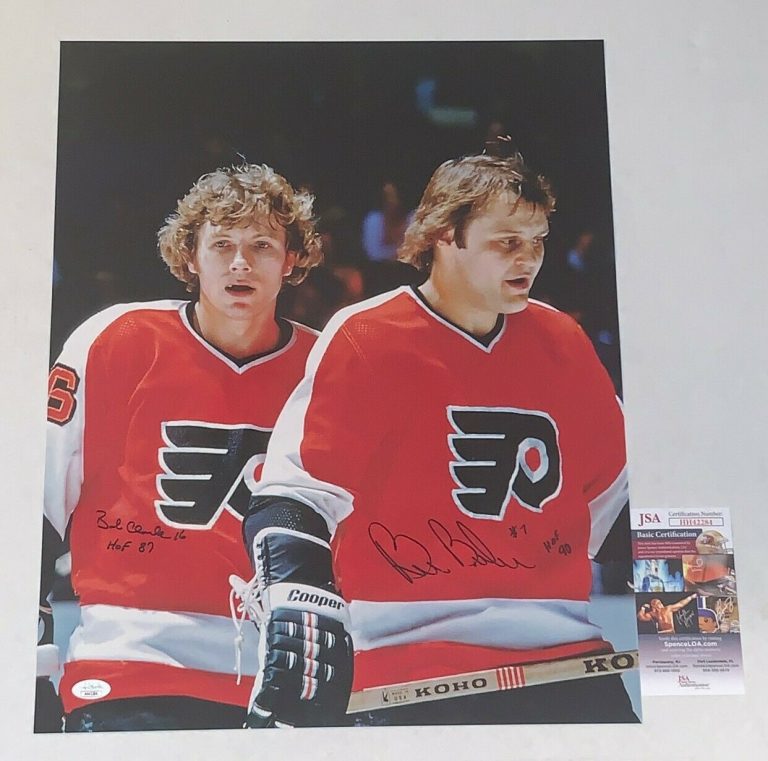 BOBBY CLARKE & BILL BARBER SIGNED PHILADELPHIA FLYERS 16×20 PHOTO HOF JSA COLLECTIBLE MEMORABILIA