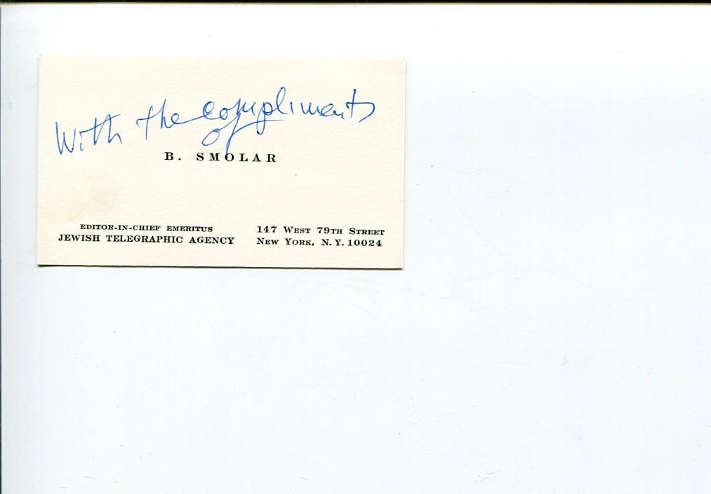BORIS SMOLAR JEWISH TELEGRAPHIC AGENCY EDITOR SIGNED AUTOGRAPH COLLECTIBLE MEMORABILIA