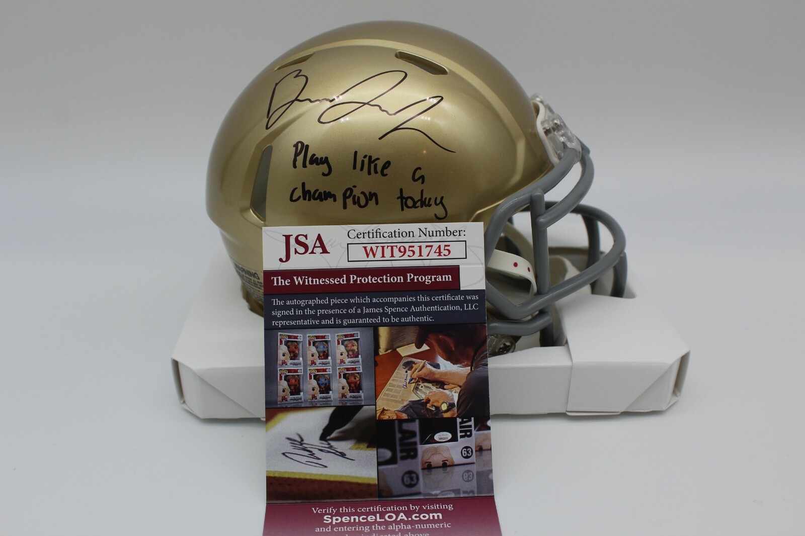 BRANDON JOSEPH SIGNED NOTRE DAME FIGHTING IRISH MINI HELMET W/JSA COA WITNESS #2 COLLECTIBLE MEMORABILIA