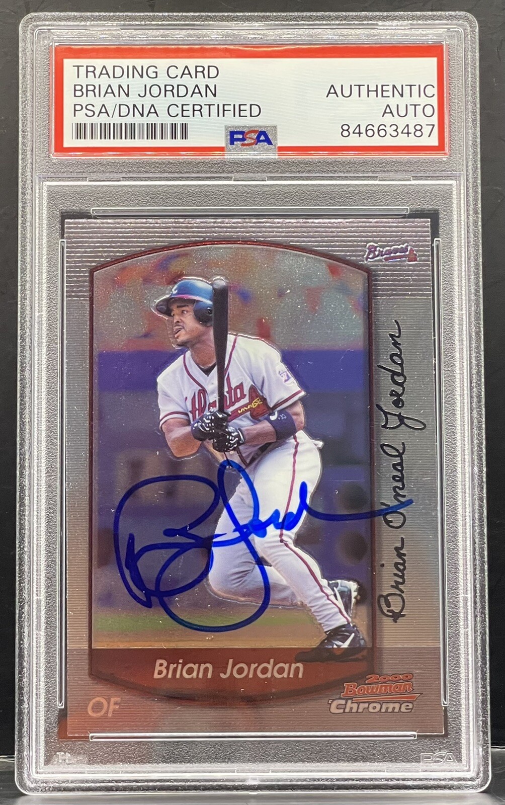 BRIAN JORDAN SIGNED 2000 BOWMAN CHROME CARD ATLANTA BRAVES PSA/DNA SLABBED COLLECTIBLE MEMORABILIA