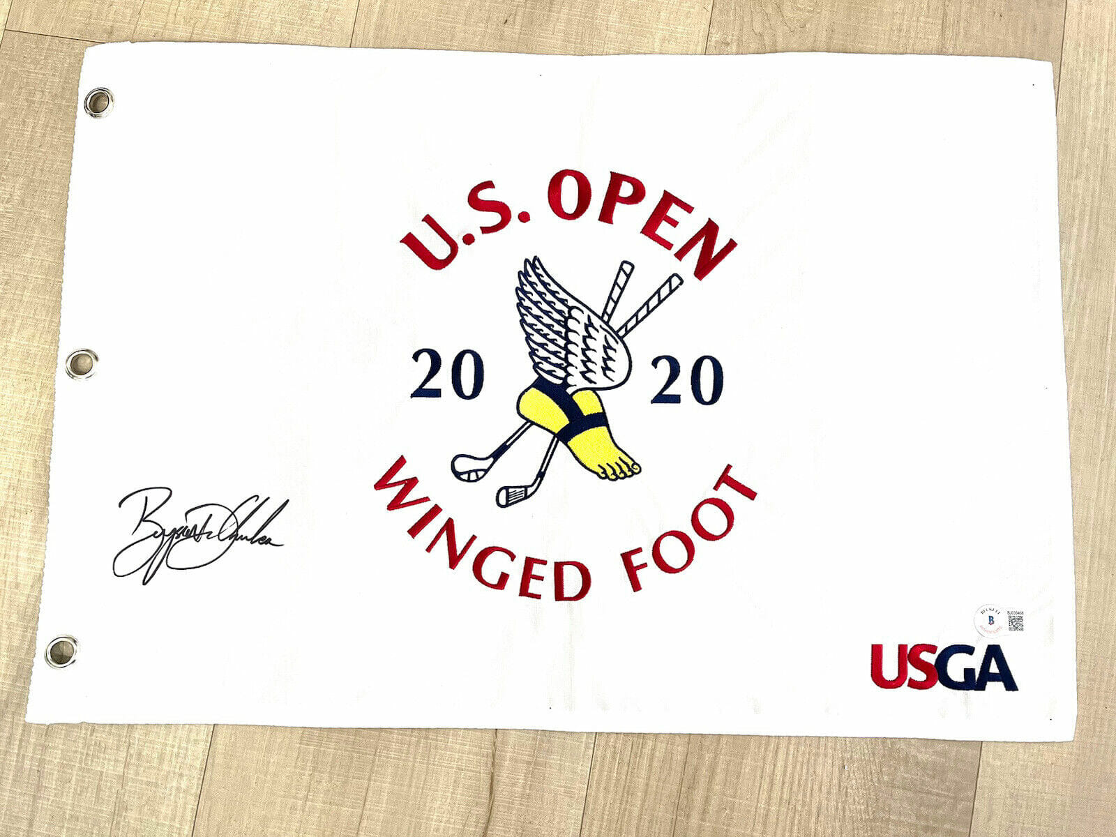 BRYSON DECHAMBEAU HAND SIGNED 2020 U.S. OPEN FLAG WINGED FOOT GOLF BECKETT BAS 1 COLLECTIBLE MEMORABILIA