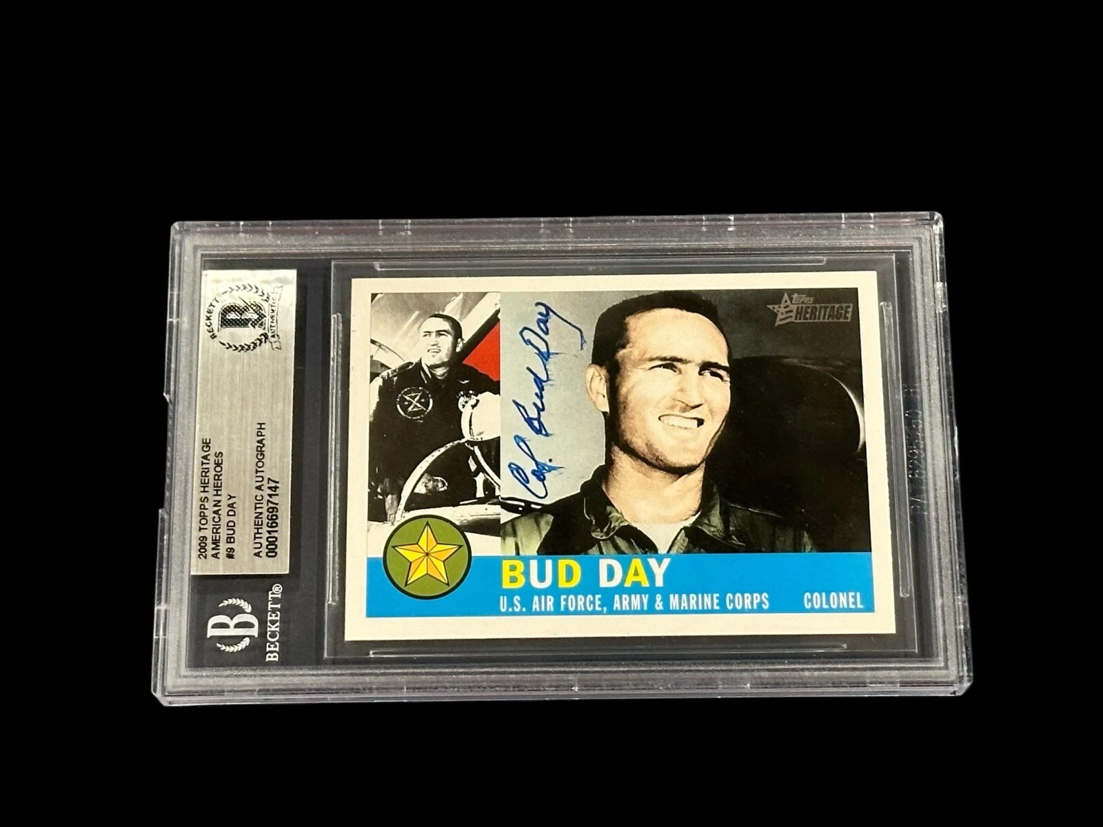 BUD DAY MEDAL OF HONOR MOH SIGNED AUTOGRAPH 2009 TOPPS HERITAGE HERO BECKETT BAS COLLECTIBLE MEMORABILIA