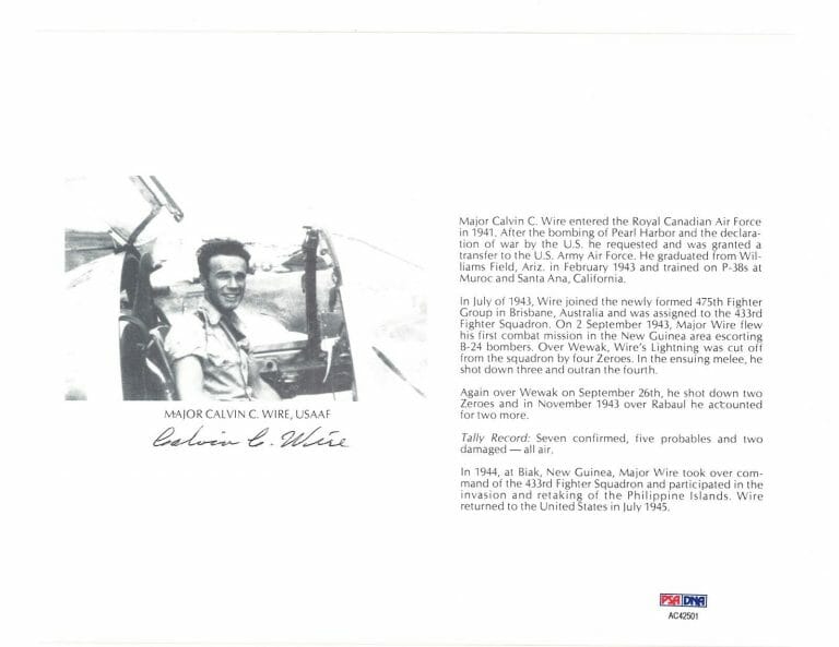 CALVIN WIRE SIGNED 8X10 (D) PSA DNA AC42501 WWII ACE 7 KILLS COLLECTIBLE MEMORABILIA