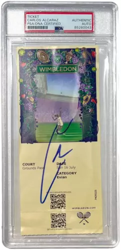 CARLOS ALCARAZ SIGNED 2023 WIMLEDON TENNIS TICKET FINALS AUTO CHAMPION PSA/DNA COLLECTIBLE MEMORABILIA