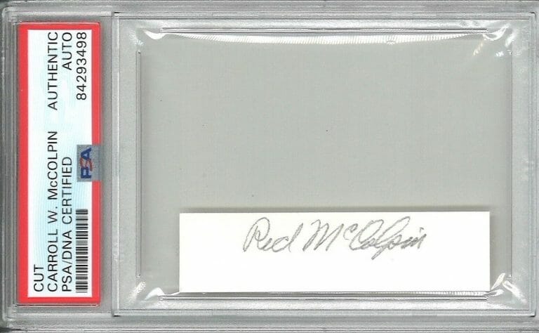 CARROLL RED MCCOLPIN SIGNED CUT SIGNATURE PSA DNA 84293498 (D) WWII AES 11.5 V COLLECTIBLE MEMORABILIA