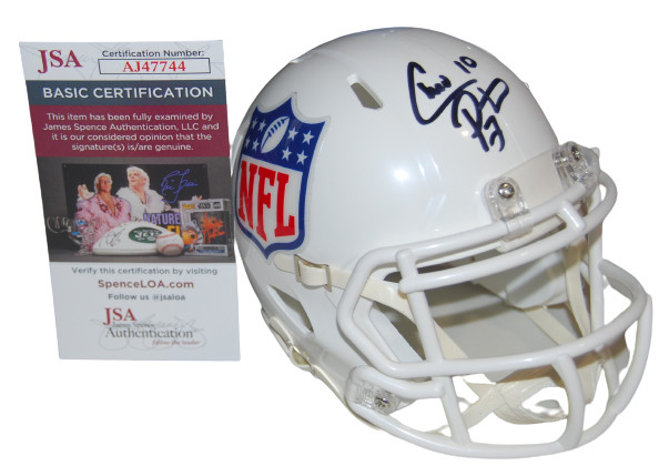 CHAD PENNINGTON SIGNED (NFL SHIELD) JETS MINI FOOTBALL HELMET JSA COA AJ47744 COLLECTIBLE MEMORABILIA