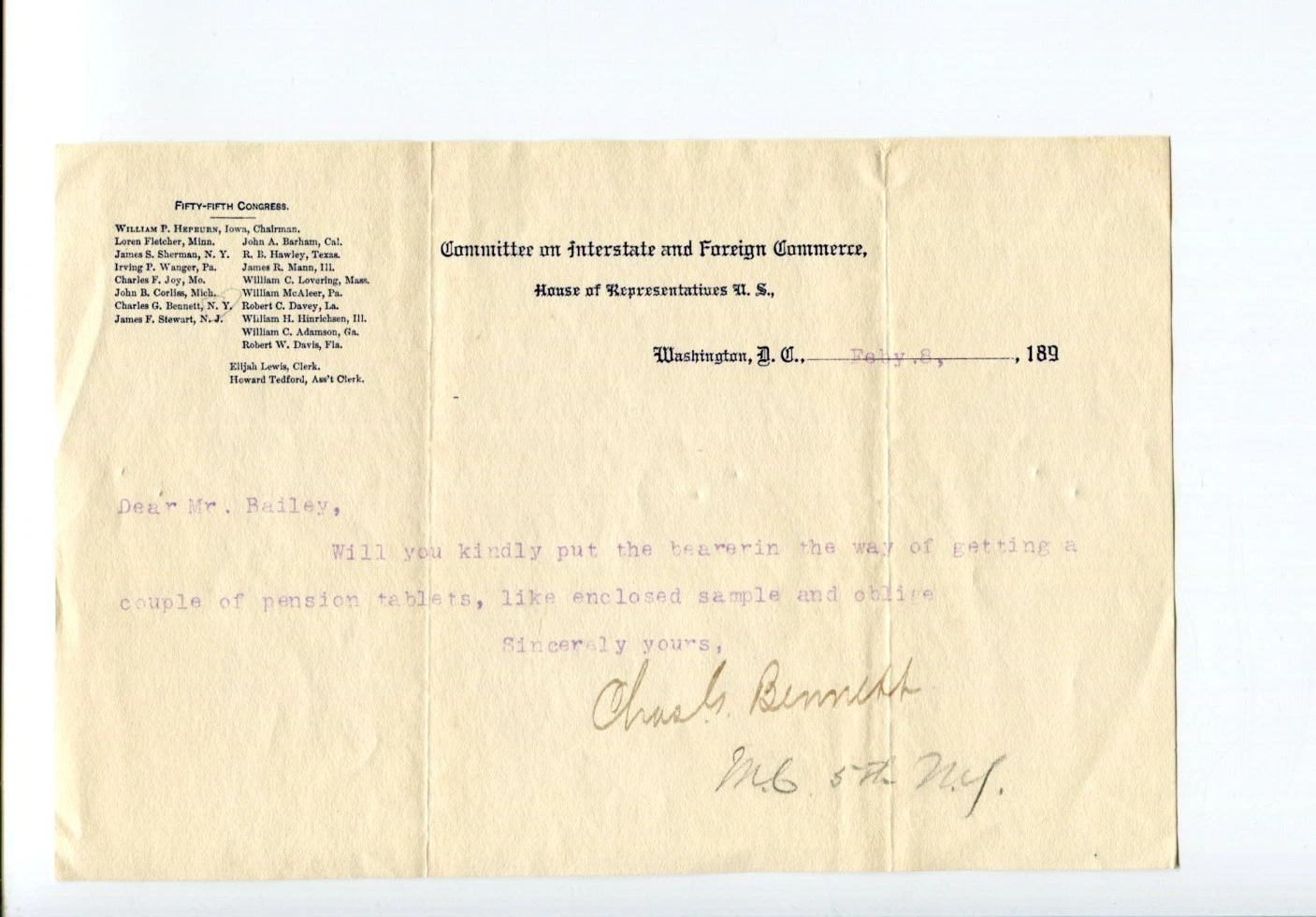 CHARLES EDWARD BENNETT NEW YORK US REPRESENTATIVE CONGRESS SIGNED AUTOGRAPH NOTE COLLECTIBLE MEMORABILIA