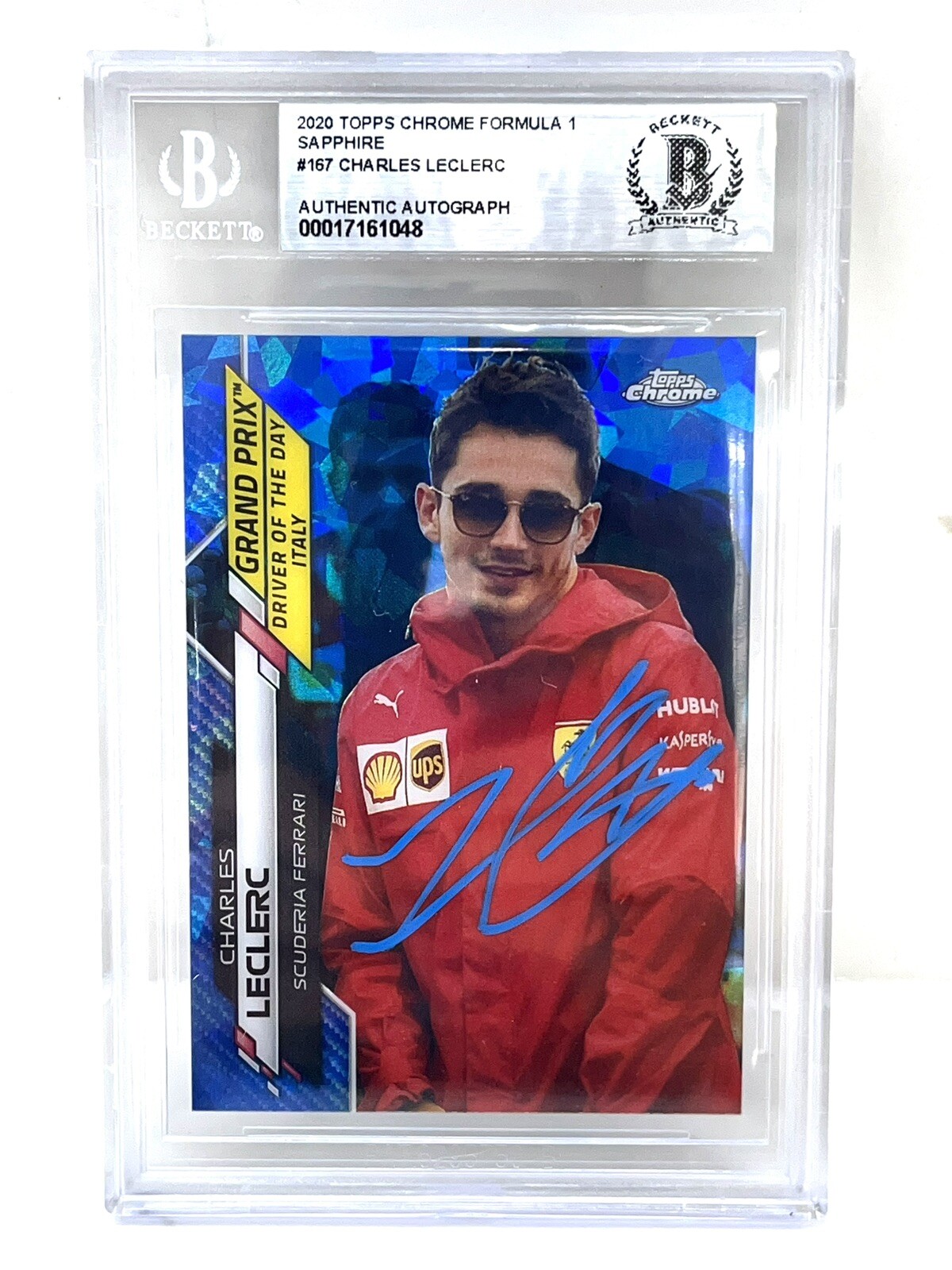CHARLES LECLERC SIGNED 2020 TOPPS CHROME SAPHIRE CARD F1 BECKETT SLAB 3 COLLECTIBLE MEMORABILIA