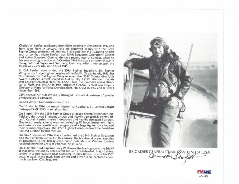 CHARLES LENFEST SIGNED 8X10 (D) PSA DNA AC41601 WWII ACE 5 KILLS COLLECTIBLE MEMORABILIA