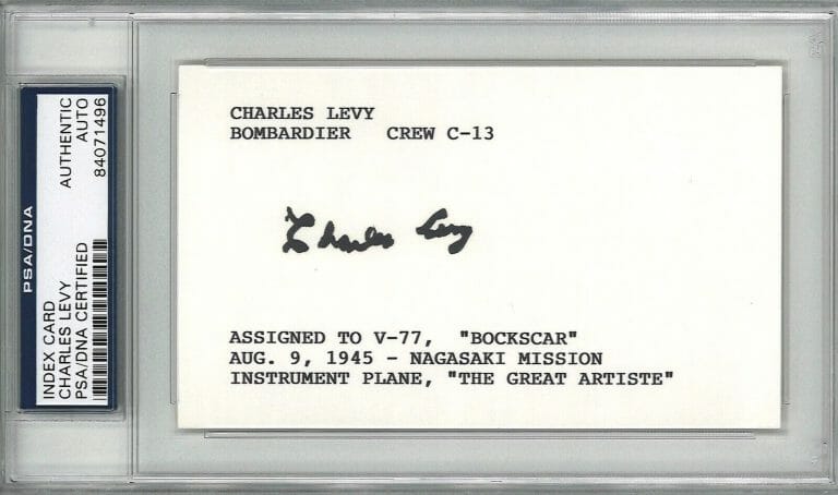 CHARLES LEVY SIGNED INDEX CARD PSA DNA 84071496 (D) BOCKSCAR C-13 RARE AUTO COLLECTIBLE MEMORABILIA
