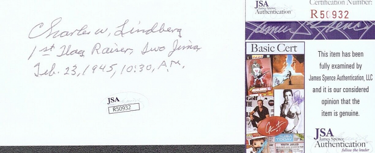 CHARLES W. LINDBERG SIGNED AUTOGRAPH 3×5 INDEX CARD JSA COA US MARINES IWO JIMA COLLECTIBLE MEMORABILIA