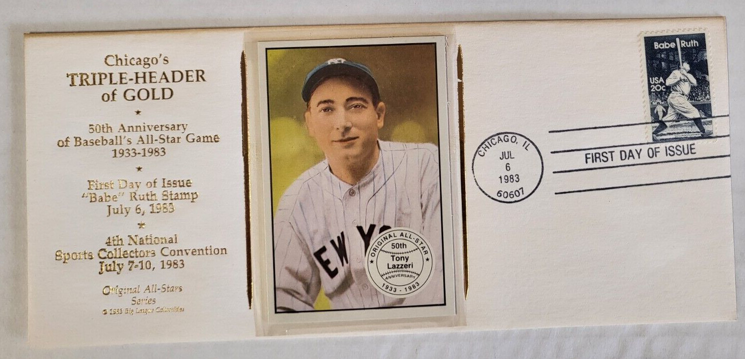 CHICAGO’S TRIPLE-HEADER OF GOLD CACHET FIRST DAY ISSUE BABE RUTH TONY LAZZERI COLLECTIBLE MEMORABILIA