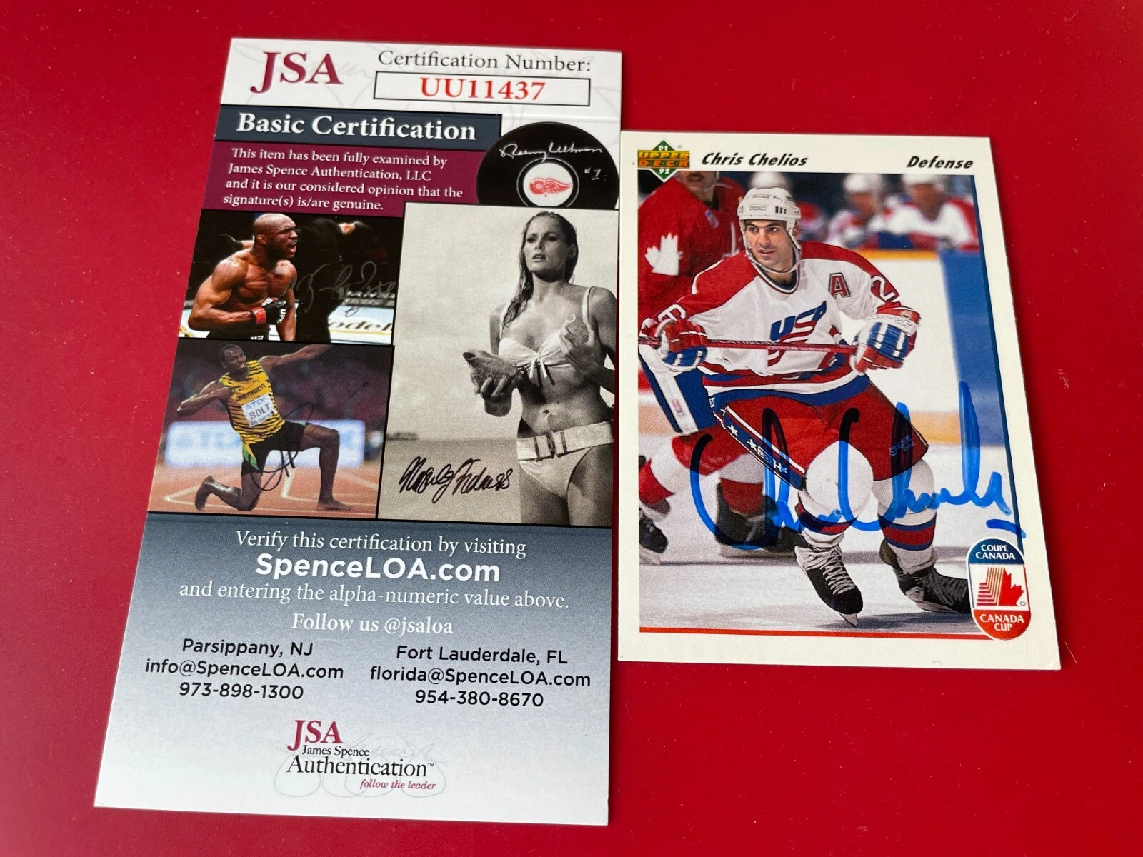 CHRIS CHELIOS BLACKHAWKS HOF 1991-92 UPPER DECK UD CARD SIGNED AUTO JSA COA COLLECTIBLE MEMORABILIA