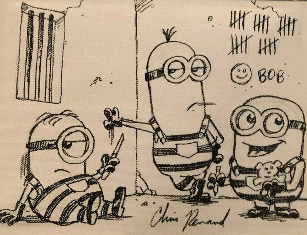 CHRIS RENAUD RARE HAND SIGNED 11×14 SKETCH CANVAS MINIONS DESPICABLE ME ARTWORK COLLECTIBLE MEMORABILIA