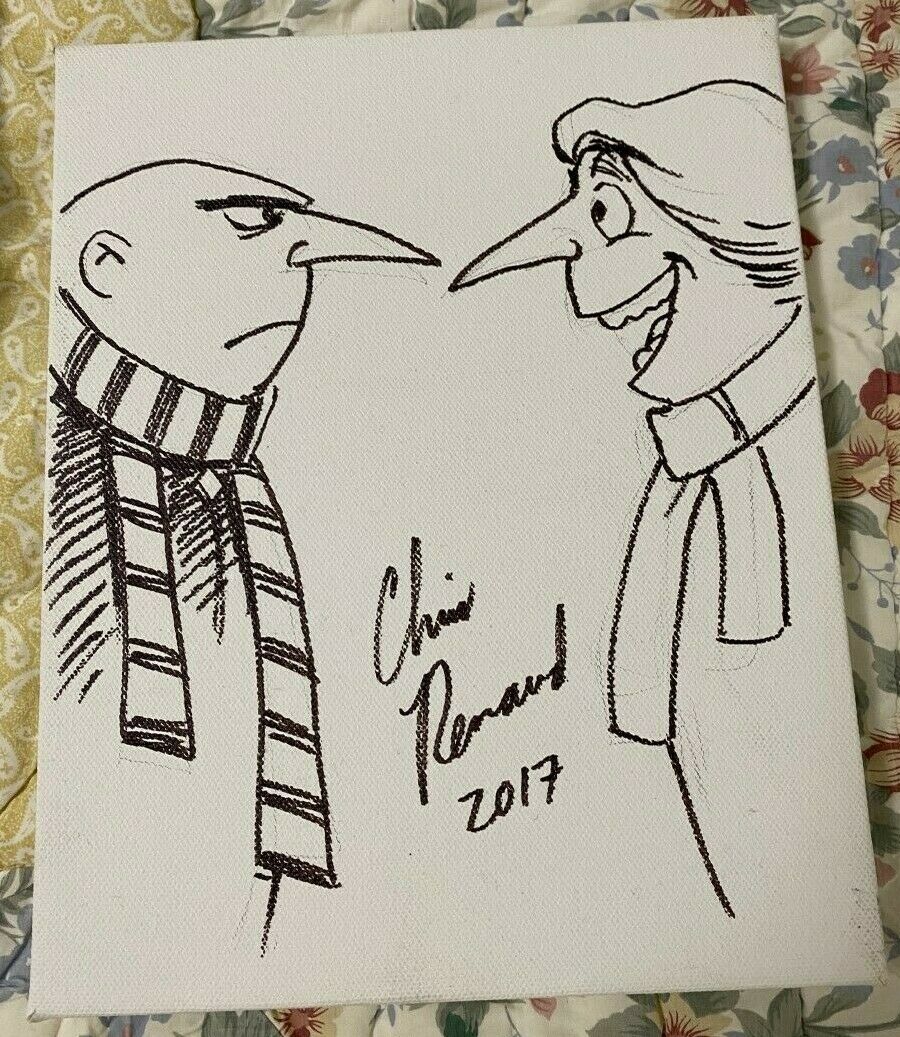 CHRIS RENAUD RARE HAND SIGNED 8×10 SKETCH CANVAS MINIONS DESPICABLE ME ARTWORK COLLECTIBLE MEMORABILIA