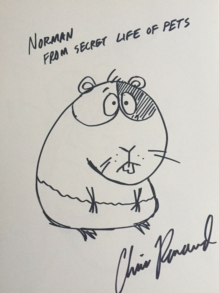 CHRIS RENAUD RARE HAND SIGNED ORIGINAL SKETCH SECRET LIFE OF PETS MINIONS COLLECTIBLE MEMORABILIA