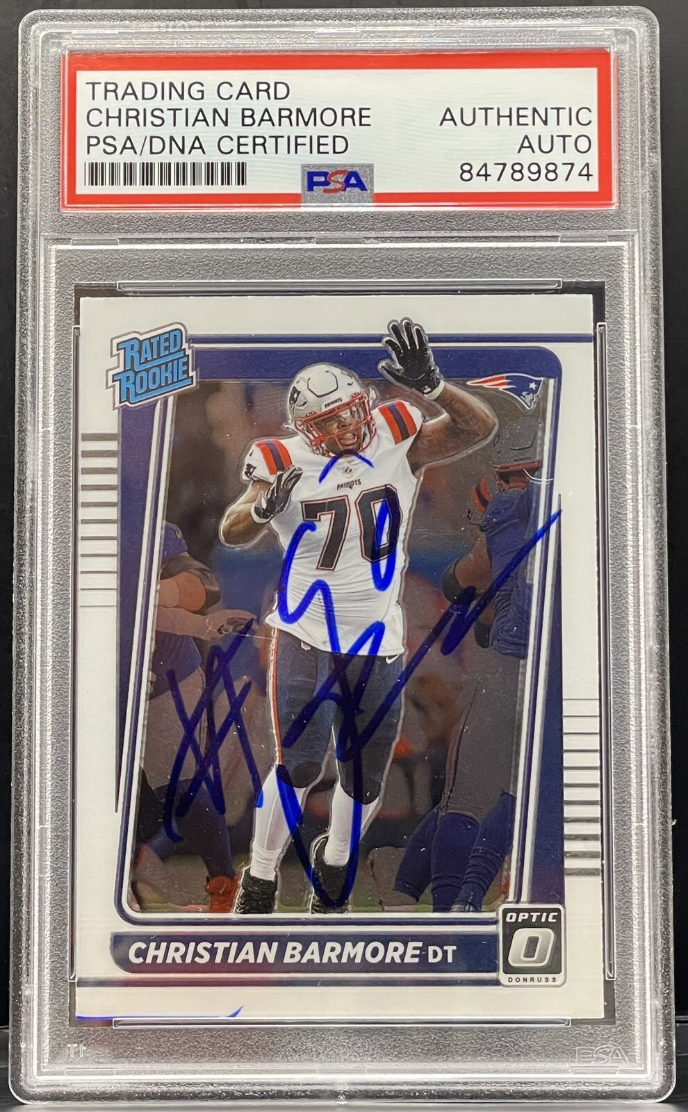 CHRISTIAN BARMORE SIGNED 2021 DONRUSS OPTIC PATRIOTS ROOKIE CARD PSA/DNA SLABBED COLLECTIBLE MEMORABILIA