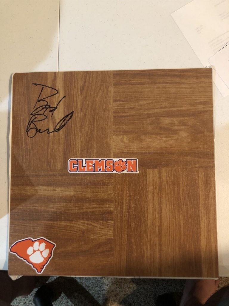 CLEMSON TIGERS- BRAD BROWNELL SIGNED AUTOGRAPH 12×12 LOGO BASKETBALL FLOOR BOARD COLLECTIBLE MEMORABILIA