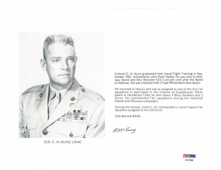 CM KUNZ SIGNED 8X10 (D) PSA DNA AC41589 WWII ACE 8 KILLS COLLECTIBLE MEMORABILIA