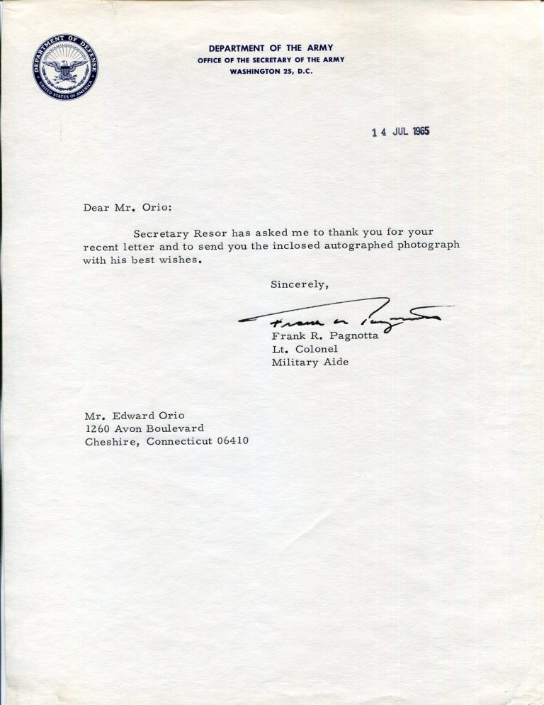 COLONEL FRANK R. PAGNOTTA WWII 12TH ARMORED DV WHITE HOUSE AIDE SIGNED AUTOGRAPH COLLECTIBLE MEMORABILIA