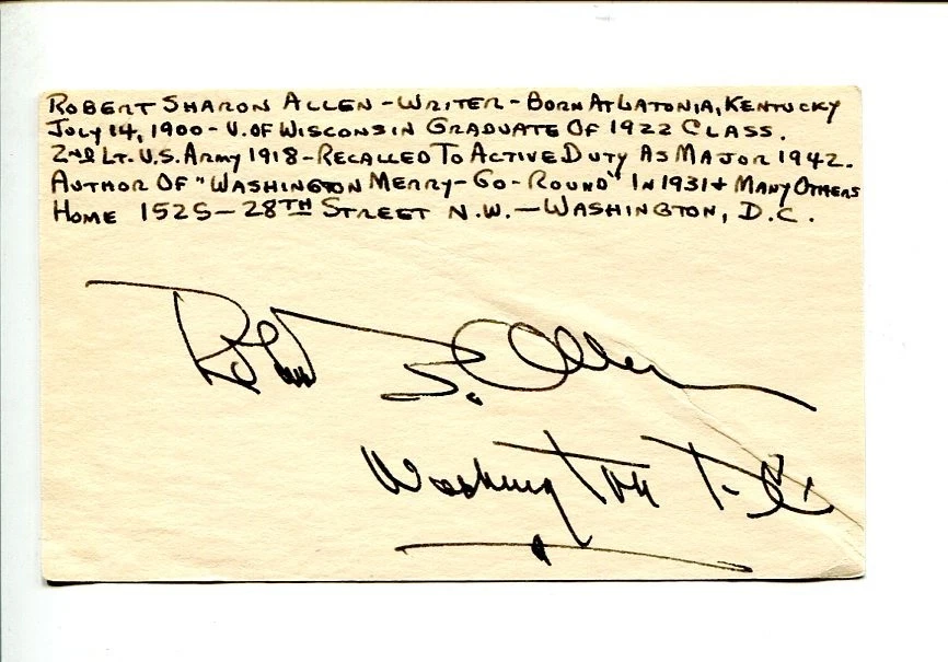 COLONEL ROBERT S. ALLEN WWII CHRISTIAN SCIENCE MONITOR SIGNED AUTOGRAPH COLLECTIBLE MEMORABILIA