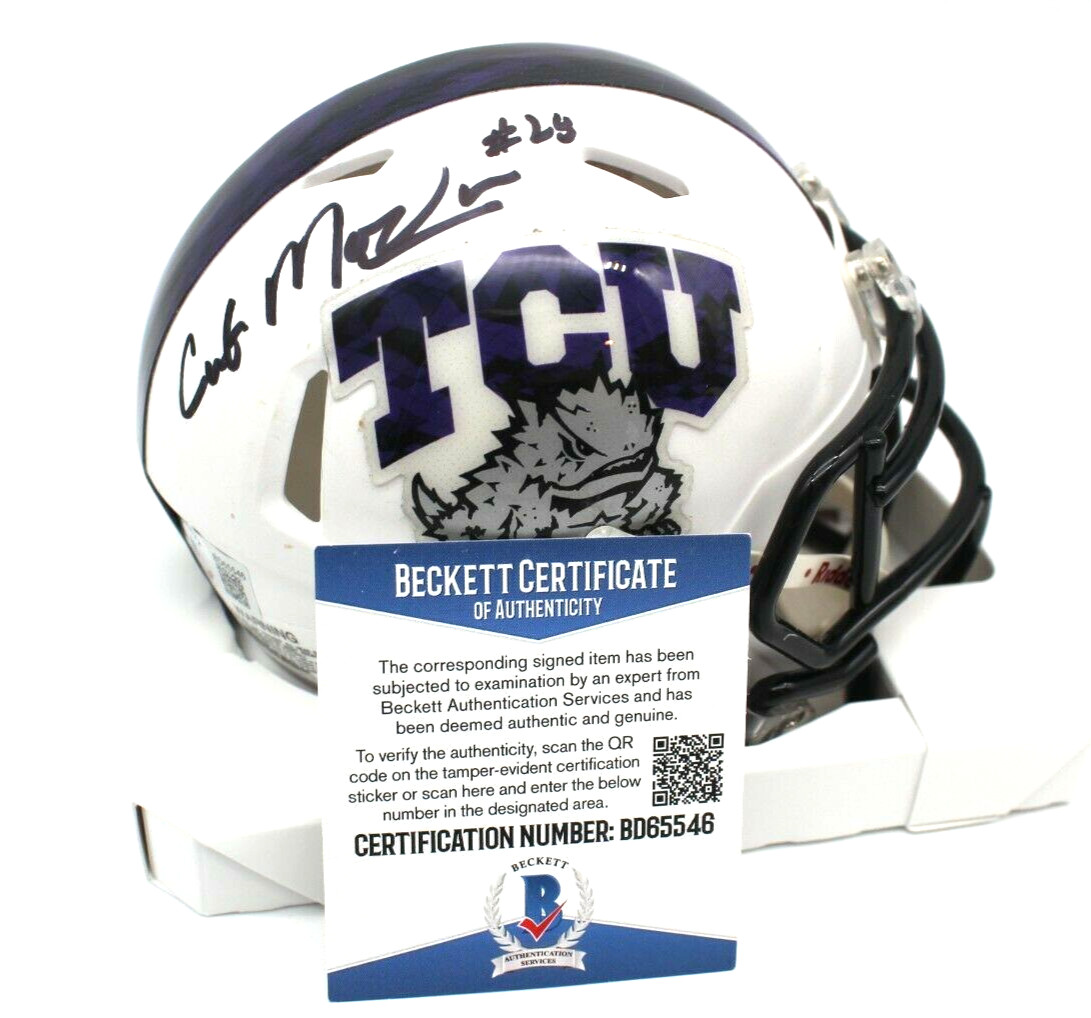 CURTIS MODKINS SIGNED TCU HORNED FROGS MINI HELMET W/BECKETT COA BD65546 COLLECTIBLE MEMORABILIA