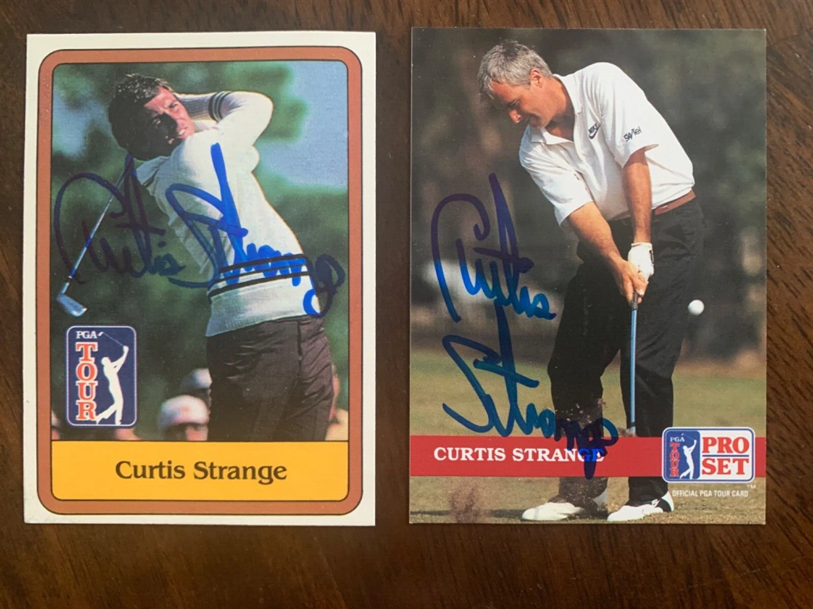 CURTIS STRANGE LOT OF 2 HAND SIGNED GOLF CARDS+COA 2X US OPEN GOLF CHAMP COLLECTIBLE MEMORABILIA