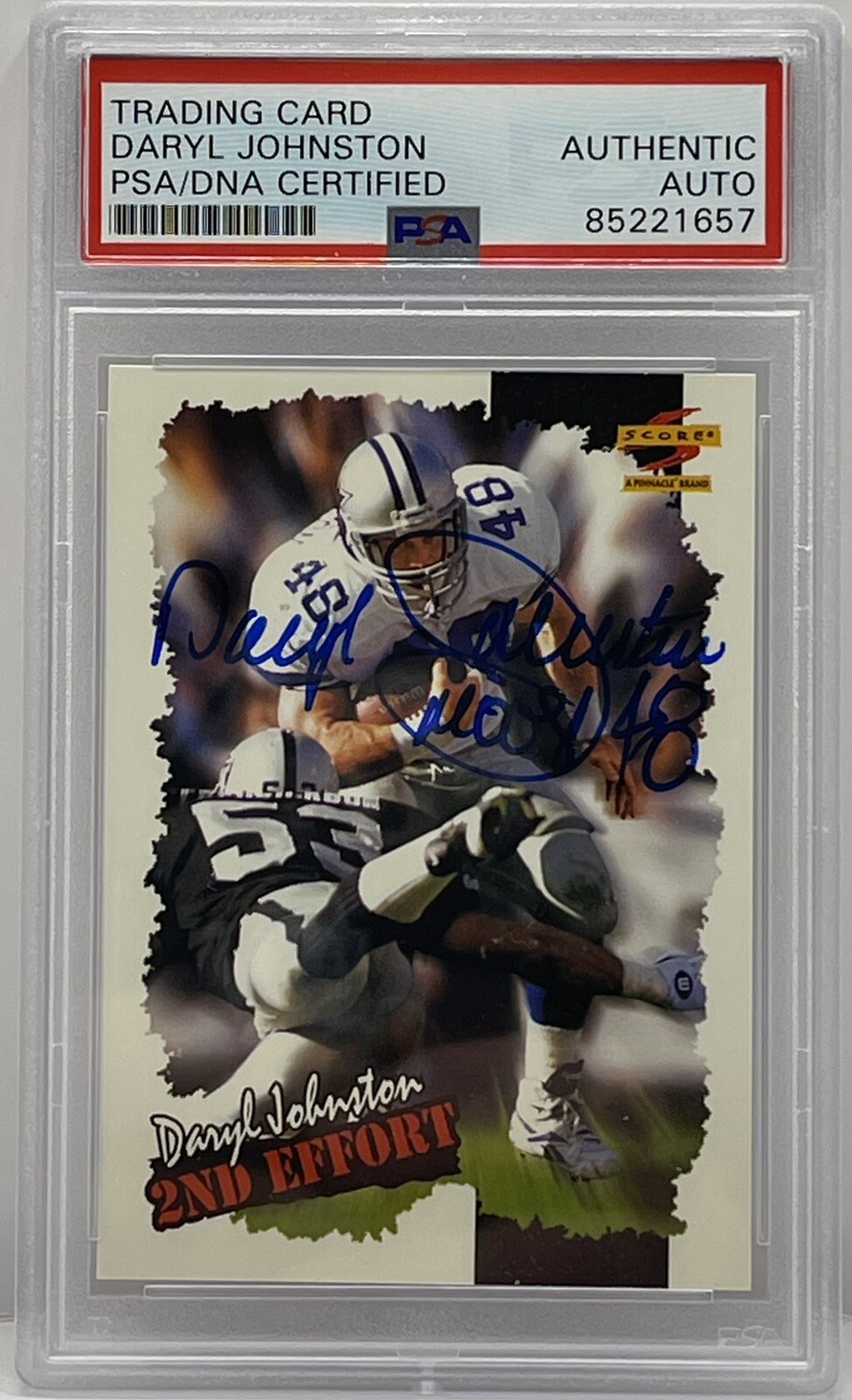 DARYL JOHNSTON SIGNED 1996 SCORE CARD DALLAS COWBOYS PSA/DNA SLABBED COLLECTIBLE MEMORABILIA