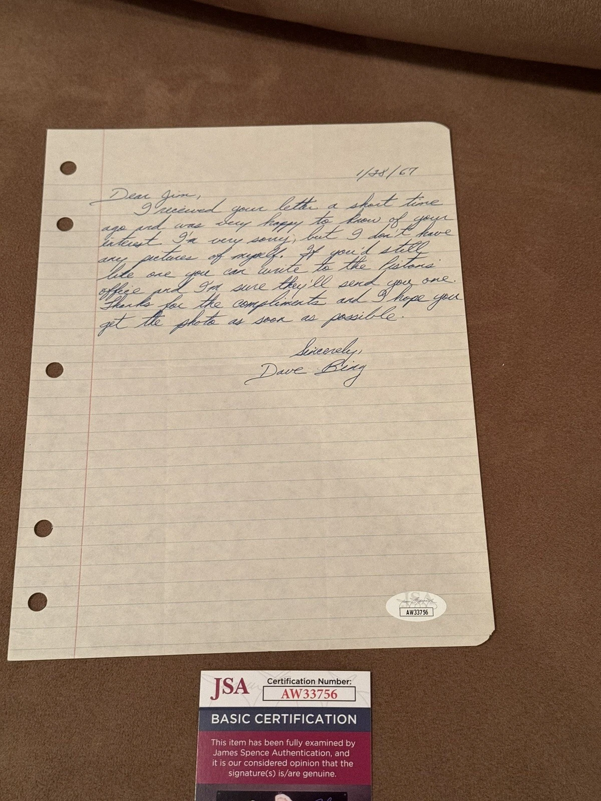 DAVE BING AUTOGRAPH LETTER SIGNED 1/28/67 DETROIT SYRACUSE BASKETBALL JSA COLLECTIBLE MEMORABILIA