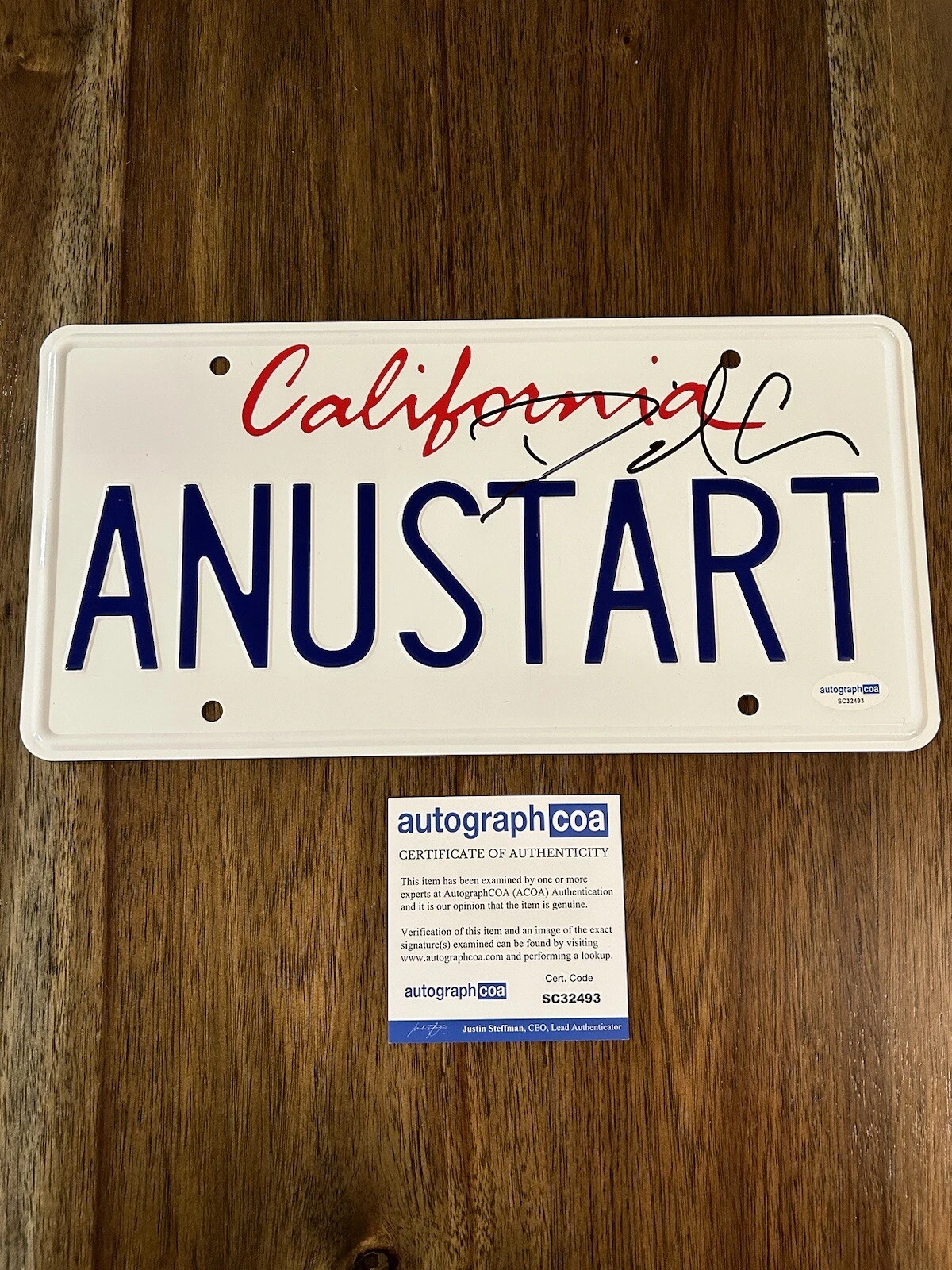 DAVID CROSS SIGNED AUTOGRAPH LICENSE PLATE ‘ANUSTART’ ARRESTED DEVELOPMENT ACOA COLLECTIBLE MEMORABILIA