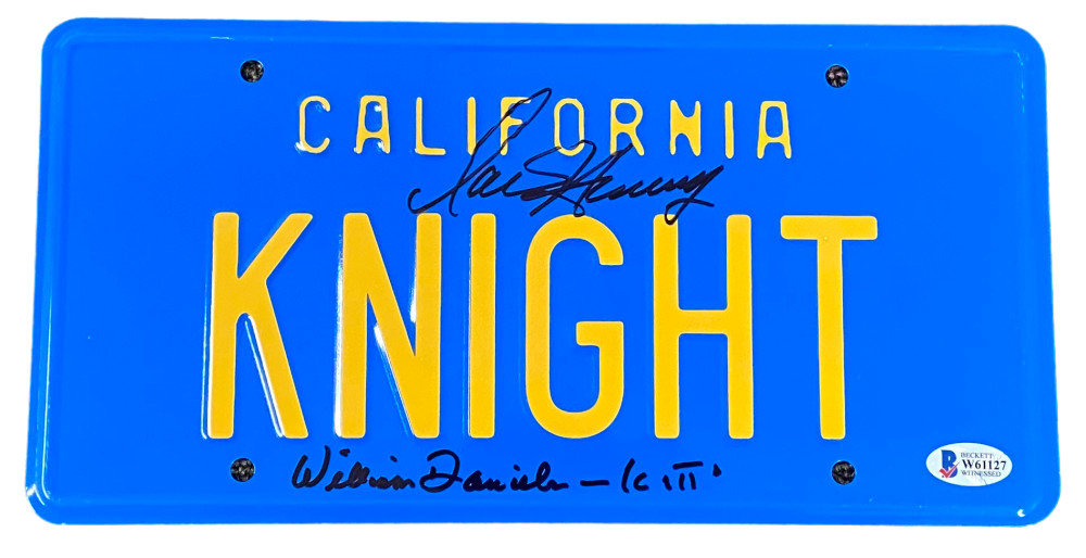 DAVID HASSELHOFF WILLIAM DANIELS SIGNED KNIGHT RIDER LICENSE PLATE KITT BECKETT COLLECTIBLE MEMORABILIA